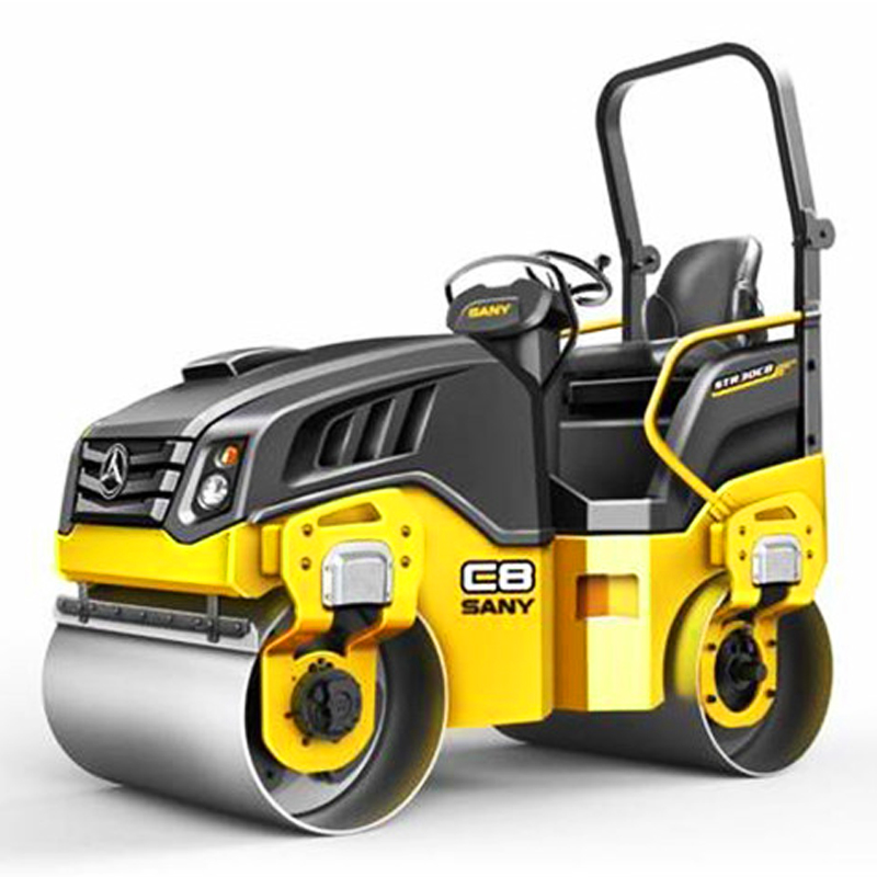 TANDEM DRUM ROLLER 3 TON STR30C-8 Operating Weight : 3000kg Excitation Force : 46/28kN Rated Net Power : 28.1 kW(gross)